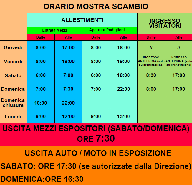 Gli appassionati che intendono esporre Auto o Moto d’Epoca, possono prenotare lo spazio o presentarsi direttamente in Fiera la mattina dell’evento.